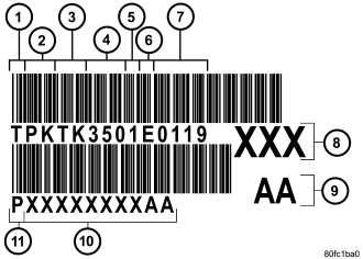 The label contains a series of digits that can be translated into useful information such as transmission part number (10), date of manufacture (4, 5), manufacturing origin (2), assembly line identifier (6), build sequence number (7), etc..