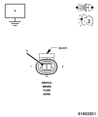 1.BRAKE FLUID LEVEL SWITCH SIGNAL VOLTAGE ABOVE 4.9 VOLTS