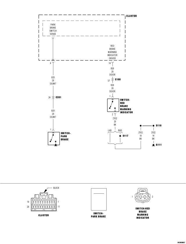 NOTE: Ensure that the Brake Fluid Level Switch and Instrument Cluster harness connectors are properly connected.