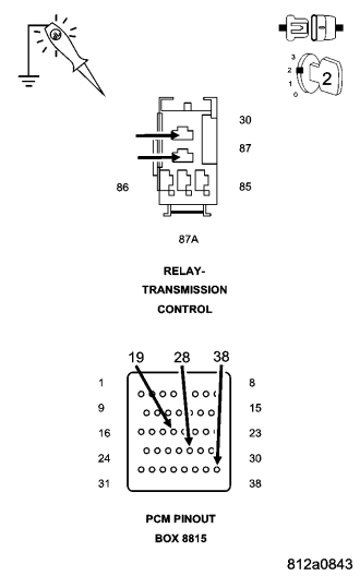 With the engine running and the PCM has closed the Transmission Control Relay.