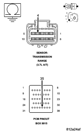 CAUTION: Do not probe the PCM harness connectors. Probing the PCM harness connectors will damage the PCM terminals resulting in poor terminal to pin connection. Install Miller Tool #8815 to perform diagnosis.