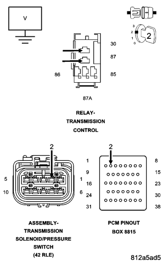 Always perform the 42RLE Pre-Diagnostic Troubleshooting procedure before proceeding. (Refer to 21 - TRANSMISSION/TRANSAXLE/AUTOMATIC - 42RLE - STANDARD PROCEDURE)