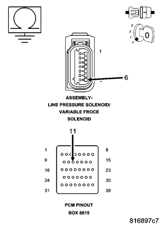 CAUTION: Do not probe the PCM harness connectors. Probing the PCM harness connectors will damage the PCM terminals resulting in poor terminal to pin connection. Install Miller tool #8815 to perform diagnosis.