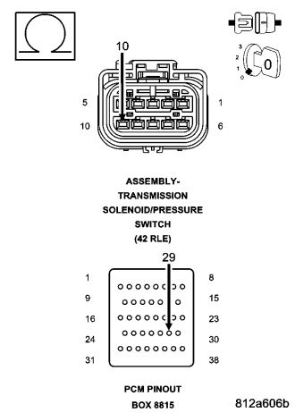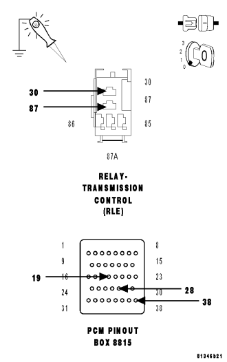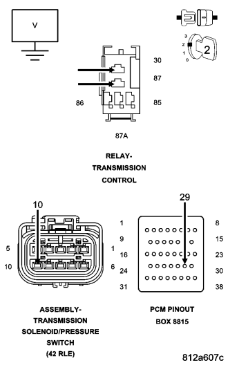 NOTE: The jumper wire must still be in place in the Transmission Control Relay connector.