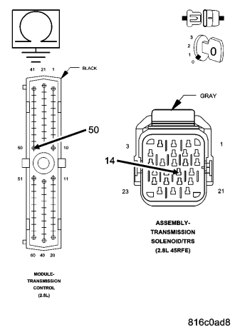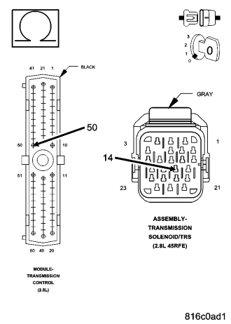 Always perform the 45RFE/545RFE Pre-Diagnostic Troubleshooting procedure before proceeding. (Refer to 21 - TRANSMISSION/TRANSAXLE/AUTOMATIC - 45RFE/545RFE - STANDARD PROCEDURE)