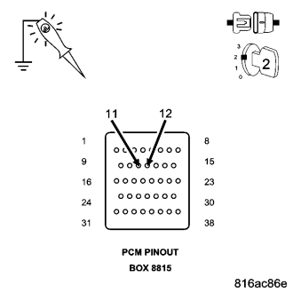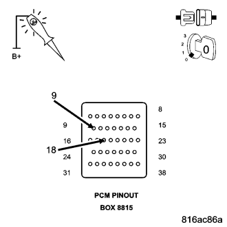 CAUTION: Do not probe the PCM harness connectors. Probing the PCM harness connectors will damage the PCM terminals resulting in poor terminal to pin connection. Install Miller Special Tool #8815 to perform diagnosis.