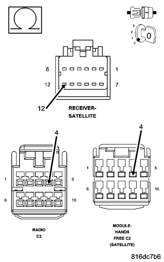 NOTE: If the vehicle is equipped with a Hands Free Phone module, check the connectors. This device is a pass through for the satellite receiver circuits.