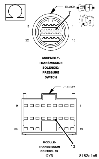 Always perform the CVT Pre-Diagnostic Troubleshooting procedure before proceeding. (Refer to 21 - TRANSMISSION/TRANSAXLE/AUTOMATIC - CVT - STANDARD PROCEDURE)
