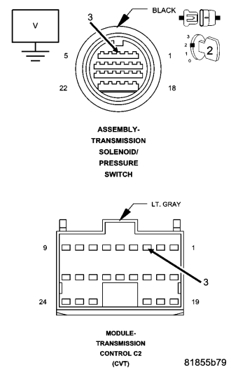 • Using the schematics as a guide, check the Transmission Control Module (TCM) terminals for corrosion, damage, or terminal push out. Pay particular attention to all power and ground circuits. Check for any Service Bulletins for possible causes that may apply. If no problems are found, replace the TCM per the Service Information.