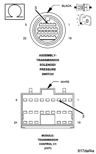 Always perform the CVT Pre-Diagnostic Troubleshooting procedure before proceeding. (Refer to 21 - TRANSMISSION/TRANSAXLE/AUTOMATIC - CVT - STANDARD PROCEDURE)