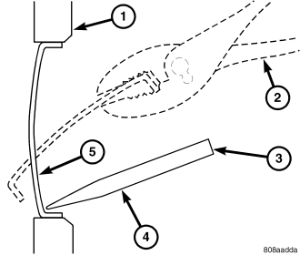 Using a blunt tool (3) such as a drift and a hammer, strike the bottom edge of the cup plug (5). With the cup plug rotated, grasp firmly with pliers or other suitable tool (2) and remove plug (5).
