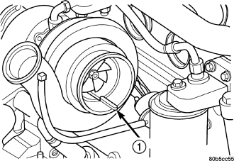 Visually inspect the turbocharger and exhaust manifold gasket surfaces. Replace stripped or eroded mounting studs.