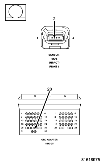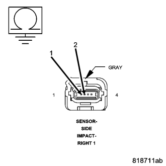 The Occupant Restraint Controller (ORC) continuously communicates with the Right Side Impact Sensor 1 over the sensor signal circuit. The sensor communication and on board diagnostics are powered by the ORC signal.
