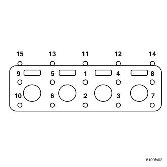 - Step 2— Tighten M12 cylinder head bolts, in sequence, to 54 N·m (40 ft. lbs.) and verify M8 bolts to 20 N·m (15 ft. lbs.) torque..