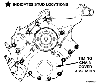 NOTE: It is not necessary to remove the water pump for timing cover removal.