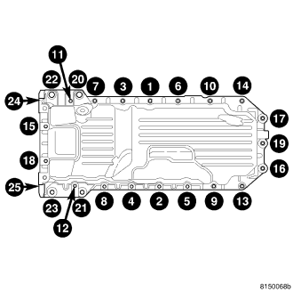 NOTE: When the oil pan is removed, a new oil pan gasket/windage tray assembly must be installed. The old gasket cannot be reused.