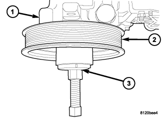 CAUTION: Do not reuse the old power steering pump pulley it is not intended for reuse. A new pulley must be installed if removed.