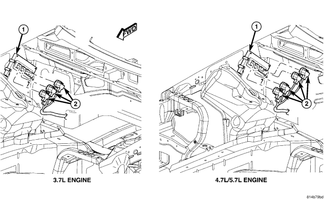 To avoid possible voltage spike damage to the PCM, ignition key must be off, and negative battery cable must be disconnected before unplugging PCM connectors.