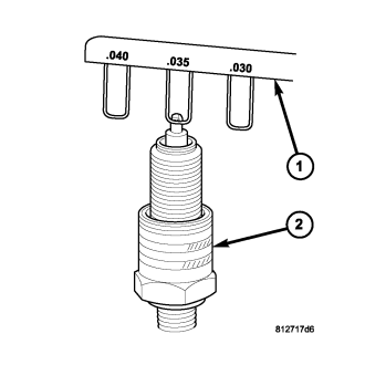Adjust spark plug gap with a gap gauging tool (1).