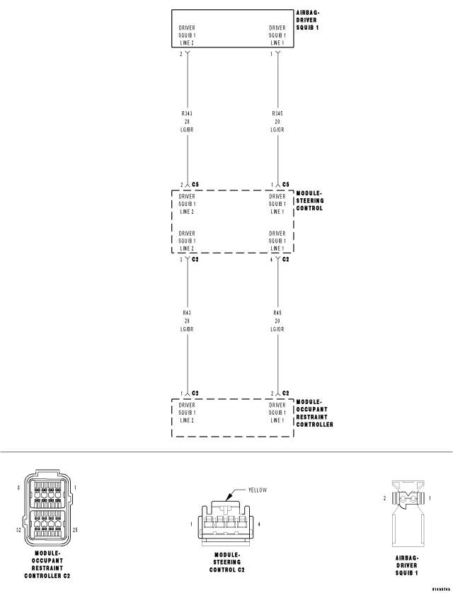 (R43) DRIVER SQUIB 1 LINE 2 CIRCUIT OR (R45) DRIVER SQUIB 1 LINE 1 CIRCUIT SHORTED TO GROUND