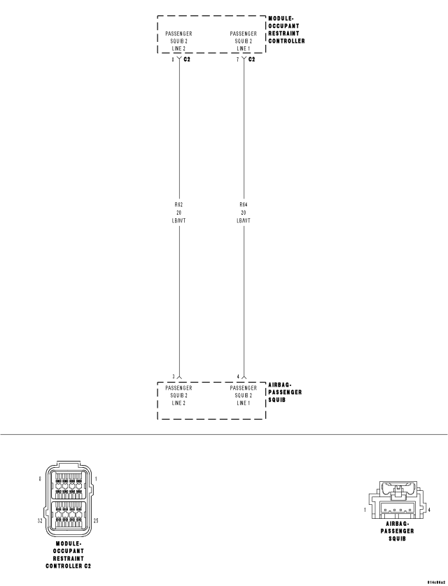 3.CHECK (R64) PASSENGER SQUIB 2 LINE 1 CIRCUIT AND (R62) PASSENGER SQUIB 2 LINE 2 CIRCUIT FOR A SHORT TO BATTERY
