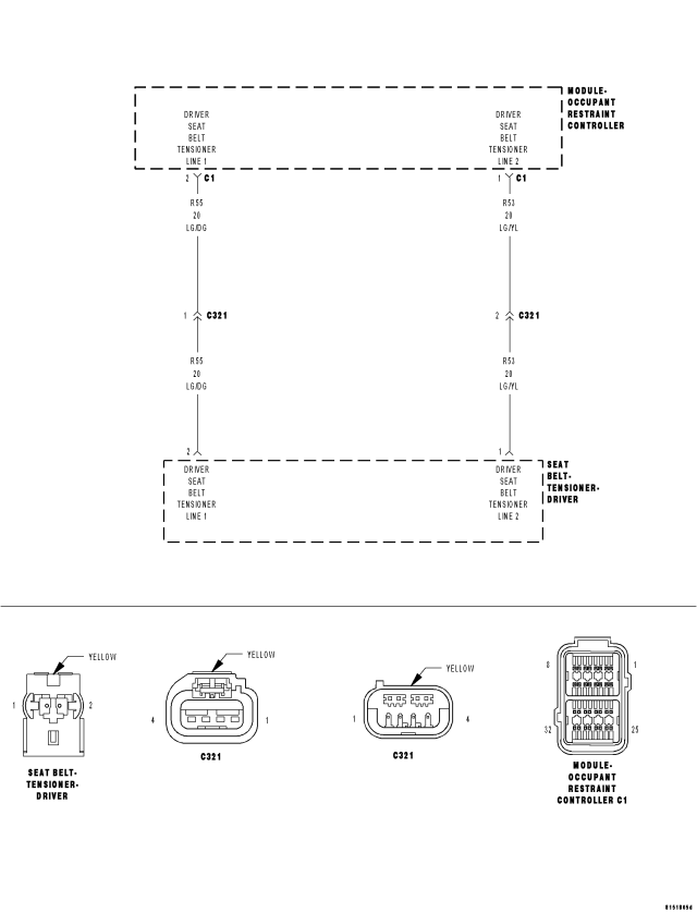 (R55) DRIVER SEAT BELT TENSIONER LINE 1 CIRCUIT OR (R53) DRIVER SEAT BELT TENSIONER LINE 2 CIRCUIT OPEN