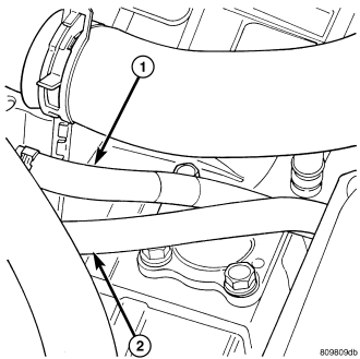 NOTE: The hydraulic fan drive is driven by the power steering pump. When removing lines or hoses from fan drive assembly use a drain pan to catch any power steering fluid that may exit the fan drive or the lines and hoses.