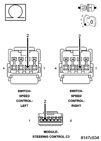 NOTE: The measurement must be taken from both Speed Control Switch harness connectors.