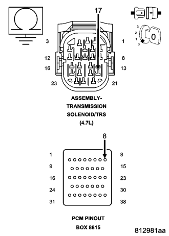 NOTE: This DTC is strictly an electrical fault and cannot be caused by any internal transmission failure other than an open in the Transmission Solenoid/TRS Assembly. If the Transmission Solenoid/TRS Assembly is in need of replacement — do not replace the Valve Body.