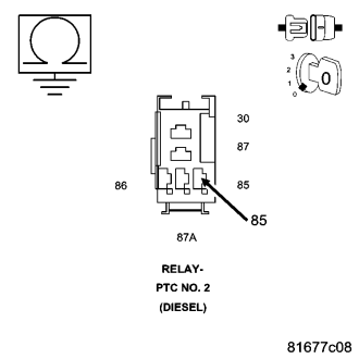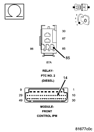 With the ignition on and the PTC No. 2 Relay command on.