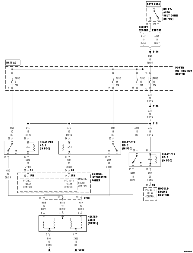 If the Front Control Module (FCM) detects that the (K361) PTC No. 2 Relay Control circuit is shorted to ground.