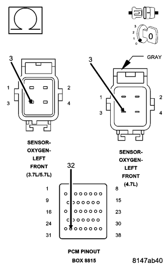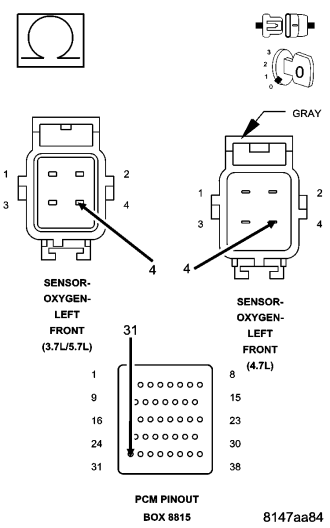 NOTE: Measure the voltage in reference to ground, not the (K902) O2 Return Upstream circuit.