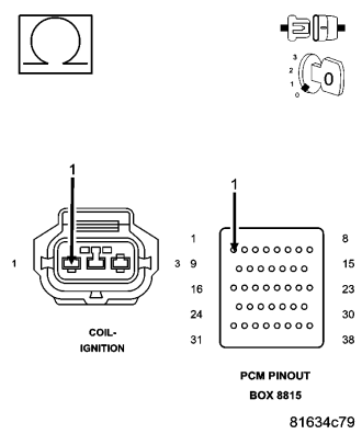 NOTE: The primary resistance of the 3.7L and 4.7L Ignition coil is 0.6 to 0.9 of an ohm and the resistance of a 5.7L Ignition coil is 0.558 to 0.682 of an ohm at 25° C (77° F).