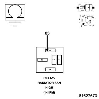 RADIATOR FAN HIGH RELAY CONTROL CIRCUIT SHORTED TO GROUND