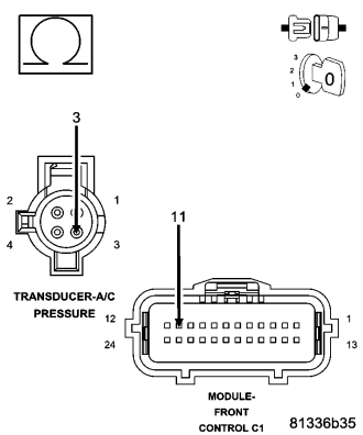 3.(C18) A/C PRESSURE SIGNAL CIRCUIT SHORTED TO BATTERY VOLTAGE