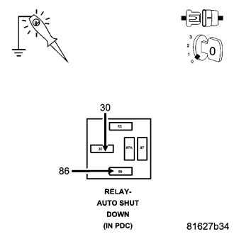 NOTE: Diagnose P0685 - Auto Shutdown Relay Control Circuit first if it set along with this DTC.