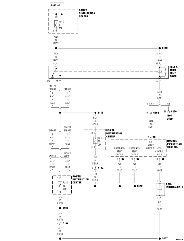 • Repair the open or short to ground in the (A15) ASD Relay Output circuit between the IPM and Coil harness connector.