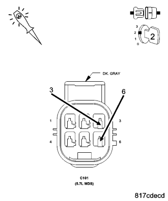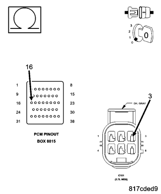 CAUTION: Do not probe the PCM harness connectors. Probing the PCM harness connectors will damage the PCM terminals resulting in poor terminal to pin connection. Install Miller Special Tool #8815 to perform diagnosis.